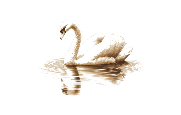 angsa putih berlayar di bawahnya